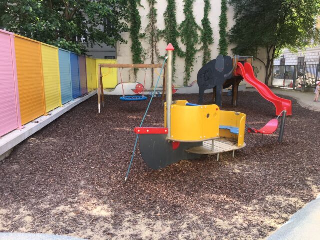 Am Helene-Heppe-Park bin ich schon oft vorbei spaziert, aber weil ich in der Nähe nie als Babysitterin tätig war habe ich ihn immer nur am Rande wahrgenommen. Der Park liegt zwischen zwei Häusern im versteckten Teil der Margaretenstraße zwischen Hofmühlgasse und Esterhazygasse. Der kleine Spielplatz ist super für jüngere Kinder geeignet und hat mit einem kleinen Kletter-Schiff, einer Elefanten-Schaukel, einer Korbschaukel, zwei Wippen und einer Sandkiste Einiges zu bieten. Durch die hohen Häuser in der engen Gasse und die begrünten Fassaden gibt es auch recht viel Schatten. Außerdem findet ihr dort natürlich eine Wasserpumpe und ausreichend Sitzmöglichkeiten.