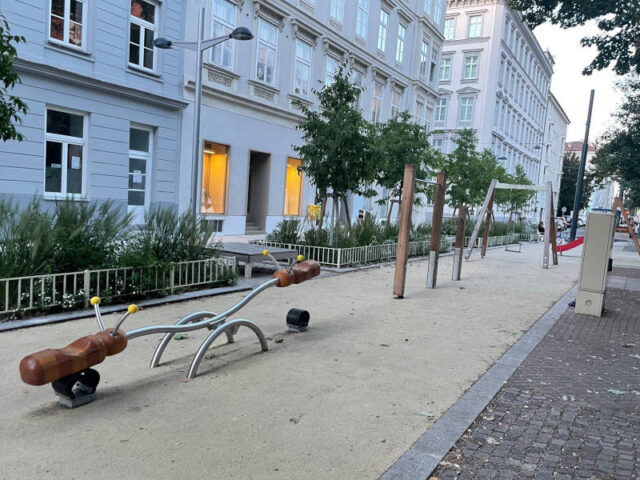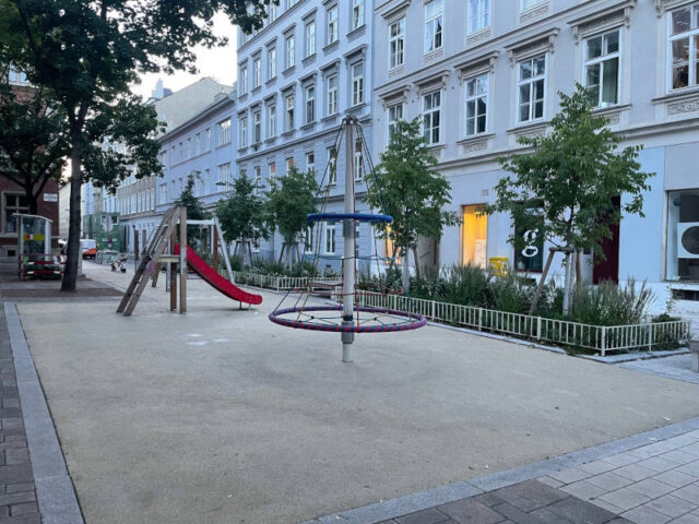 Neben der Belvederegasse ist 2024 ein neur Spielstreifen entstanden. Dort laden eine kleine Rutsche, eine entzückende Wippe, Reckstangen und eine Kleinkinderschaukel, alles auf Fallschutzboden, auch Kinder im Rollstuhl zum Spielen ein. Außerdem: Seit Dezember 2024 liegt der St.-Elisabeth-Platz an Wiens erster Fahrradstraße und ist dadurch noch besser zu erreichen.