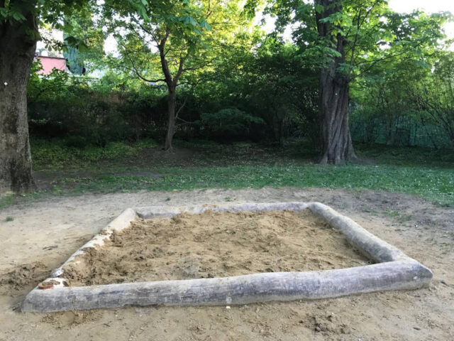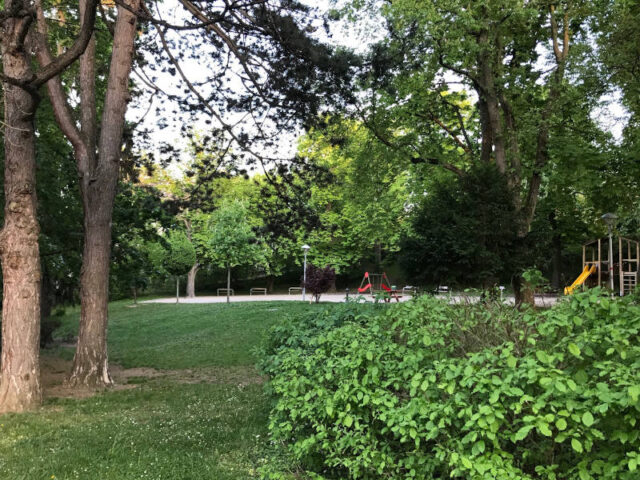 Aus einem traurigen Anlass traf ich mich mit einem Freund und seiner Tochter am Hernalser Friedhof. Nachher suchten wir nach einen Spielplatz in der Nähe, damit seine Tochter noch ein bisschen spielen und wir uns in Ruhe unterhalten konnten. Dabei entdeckten wir den Kastanienpark. Der ist nicht groß, aber es sind die benötigten Spielgeräte dort: Schaukeln, eine Kletter-Rutsch-Kombination und eine kleine Sandkiste. Außerdem gibt es dort viele Bänke und richtig schöne unterschiedliche Bäume, sodass er ideal für eine kurze Rast mit Kind ist. Als wir dort waren, blühten gerade die Kastanien und unterstrichen den Parknamen mit betörendem Duft. Ganz anders als das Öklo am Eingang.