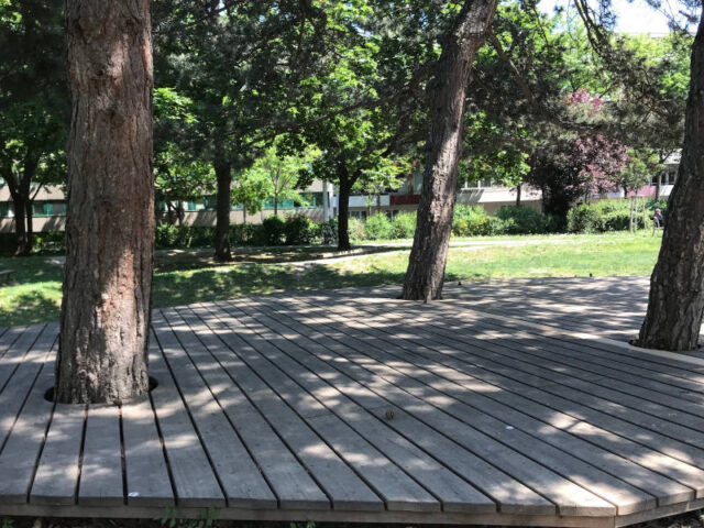 Der Braunhuberpark ist ein kleiner, übersichtlicher und schon sehr alter Park. 2008 wurde er umgestaltet und bietet nun Ruhe- und Spielraum für Groß und Klein. Seinen Namen verdankt er den Föhrengruppen, die dem Park ein betont ruhiges, entspanntes Flaire geben. Ich habe ihn bei einem Arztbesuch kennen- und schätzen gelernt. Der Spielplatz liegt an der Braunhubergasse und ist wirklich klein. Eingezäunt ist ein Bereich mit Wippe, Nestschaukel und Klettergerüst samt Rutsche. Neben einer ebenerdigen Sandkiste findet sich hier auch ein Holzpodest zum Rasten. Vor dem Kleinkinderbereich ist ein rundes Balance Element, außerdem laden im Park noch einige Holzbalken und Erdwälle zum Balancieren ein. Ein Trinkbrunnen und die Mobiltoilette ist in der Nähe der Spielbereichs. Viele Sitzgelegenheiten, sowie eine Hängematte und ein Baum-Bodest unter den Föhren laden zum Rasten ein. Da der große Herderpark keine zehn Minuten entfernt liegt, ist es hier meist ruhiger.