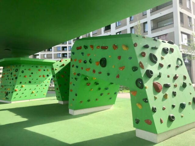 Boulderwände auf Spielplätzen und in der Stadt