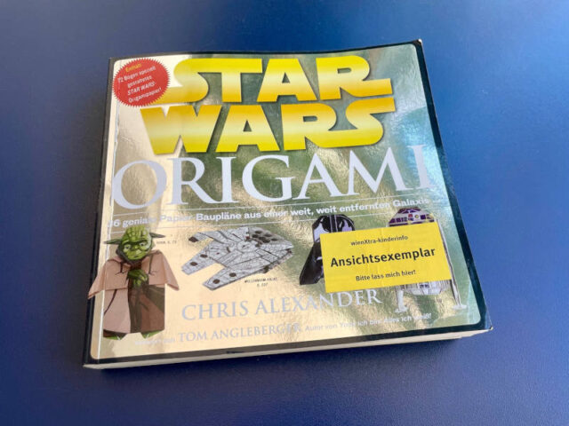 Meine Tochter hatte eine Phase, in der sie wahnsinnig gern mit Papier gebastelt hat. Da haben wir dann auch unterschiedliche Vorlagen-Bücher gefunden, die gern zum Einsatz kamen. Unter anderem auch dieses STAR WARS Origami, bei 36 geniale Papier-Baupläne angeheftet sind und man damit alles Mögliche aus der Star Wars Galaxie falten kann.