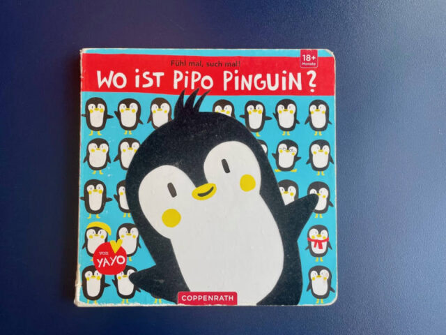 Schon am Titelbild ist der Pinguin Pipo zu sehen (und zu fühlen), um den es in diesem Buch über den Südpol geht. Bei diesem Kleinkinder-Pappbilderbuch geht es darum, den kleinen Pinguin zu finden.