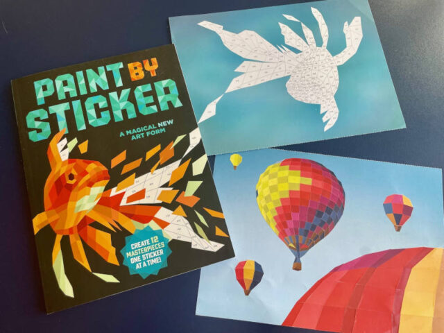 Auch bei Thalia sind viele bunte Sticker-Bücher im Angebot, z.B. Paint by Sticker, die allerdings zum Teil schon wesentlich schwieriger sind. Im Prinzip funktionieren sie wie Malen nach Zahlen nur dass man hier statt zu malen Teile hineinkleben muss, die schon vorbereitet wurden. Angenehm ist, dass man die Teile, wenn man eines ein bisschen falsch geklebt hat auch wieder gut entfernen kann und die Bilder ungemein toll aussehen.