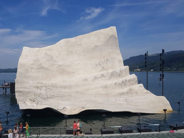 Für unsere Bregenz-Besichtigung war es leichter und günstiger eine Unterkunft im benachbarten Dornbirn zu finden. Von dort kommt man mit dem Zug in wenigen Minuten unkompliziert direkt nach Bregenz. Wir waren während der Festspielzeit da, also haben wir uns die faszinierende Seebühne angeschaut. Der Bereich für Zuschauer_innen ist tagsüber gratis zugänglich. Jede halbe Stunde wird ein Tonband abgespielt, das über die aufwendige Bühnentechnik und die aktuelle Produktion informiert.