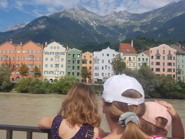 Innsbruck war unsere letzte Etappe. Für diese kleine Stadt mitten in den Bergen hatten wir einen Tag Zeit. Wie in Salzburg haben wir auch in Innsbruck in einem Hotel einer günstigen Hotelkette übernachtet. In der Altstadt haben wir uns das Wahrzeichen von Innsbruck, das Goldene Dachl angesehen. Dort gibt es auch ein Museum mit Kinderstationen und einer Rätselrallye. Wir haben uns in einer traditionsreichen Konditorei direkt neben dem Goldenen Dachl eine „Goldene Dachschindel“ aus Lebkuchen gekauft. Auf der Verpackung stand ein kurzer Text mit wissenswerten Infos zur Entstehung des Innsbrucker Wahrzeichens.