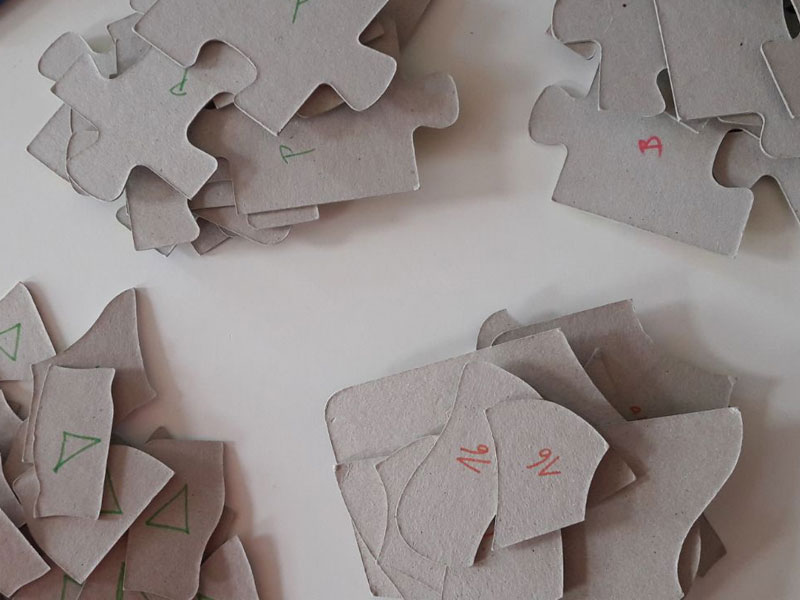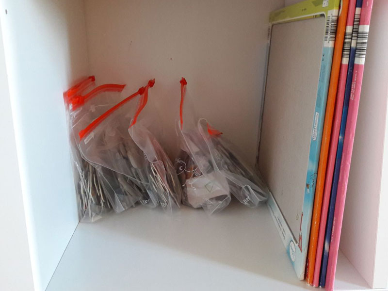 Je mehr Puzzels zu Hause aufgetaucht sind, desto weniger hat die Puzzlebox funktioniert. Also haben wir begonnen die Einzelteile auf der Rückseite zu beschriften. - Gefrierbeutel
