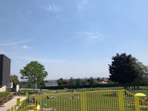 Dafür bietet das Kombibad mit seiner sehr großen Wiese und dem Fußballplatz, die Möglichkeit, sich sportlich ein bisschen mehr auszutoben.