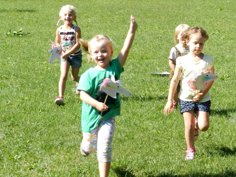 Die Steckenpferde habe ich daheim schon aus festerem Papier ausgeschnitten, mit bunter Mähne versehen und auf den Stecken befestig. Die Mädels haben ihre Pferde dann nach Lust und Laune angemalt und verziert.