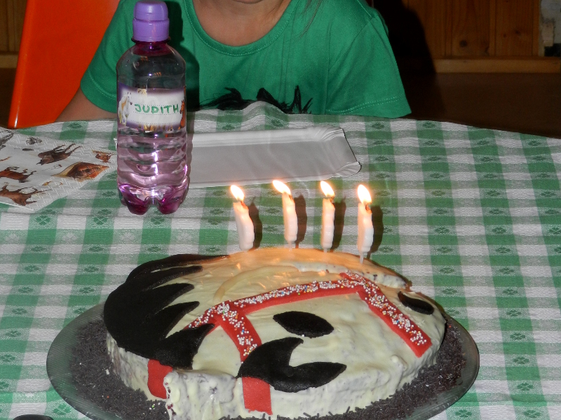 Hier gab natürlich eine Pferdetorte. Die geht ganz einfach: Man schneidet aus einer runden Torte einen Spitz heraus und verwendet diesen als Ohr. Beim Verzieren sind der Fantasie dann keine Grenzen gesetzt 🙂