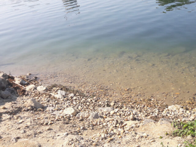 Entlang der Bucht gibt es mehrere unterschiedliche Wasserzugänge. Meine Kinder haben den breitesten gewählt. Fast alle Zugänge sind flach, aber wird sehr schnell tief. Außerdem gibt es an einigen Stellen Seegras. Das Seegras ist bei meinen Kindern nicht sehr beliebt – bei mir auch nicht so wirklich.