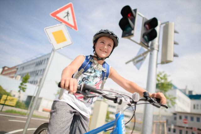 Auf den Schulverkehrsgärten könnt ihr das richtige Verhalten im Straßenverkehr üben wie z. B. zeitgerecht bremsen, in der Spur bleiben oder zeitgerecht das Zeichen beim Abbiegen geben. Ihr müsst aber nicht mit dem eigenen Fahrrad kommen, denn in den Schulverkehrsgärten stehen auch Leihräder ab 20 Zoll zur Verfügung.