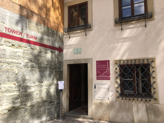 Beim Stephansdom angekommen hat mich gleich einmal die lange Schlange an Touristen am Eingang abgeschreckt. Vielleicht ist ein Besuch am Sonntag keine so gute Idee. Der Eingang zum Südturm ist aber gut versteckt auf der Seite und darum weniger überlaufen. Also habe ich mir dort eine Karte gekauft und bin losgestartet. Der Eintritt für Erwachsene kostet 5,50 Euro, für Kinder sind es 2 Euro. Der Aufstieg wird für Kinder ab 6 Jahren empfohlen. Das ist auch vernünftig so. Denn sobald man im Treppenhaus ist geht man eine gefühlt ewige Wendeltreppe entlang.