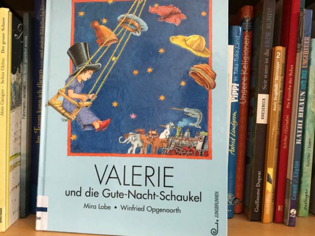 Diese Geschichte bekam meine Tochter recht früh von jemandem geschenkt. Dieses Buch bietet schon mehr Text und will natürlich vor dem Zubettgehen zu Ende gelesen werden. Die Idee, dass ein Kind nicht ins Bett gehen will und eine Schaukel im Zimmer hängen hat, auf der sie schaukelt und schaukelt, hat uns allen gefallen. Dass beim Schaukeln die Fantasie von Valerie freien Lauf hat und sie auf Besuch in allen möglichen Ländern ist, gefiel meiner Tochter ausgesprochen gut. Dass all dies in Reimform geschildert wird und mit mit großen detailgetreuen Bildern gepaart ist, war und ist ein reines Vergnügen. Noch heute erinnere ich mich an den Ausspruch von Valeries Vater: „Valerie, sei so nett, ab ins Bett!“