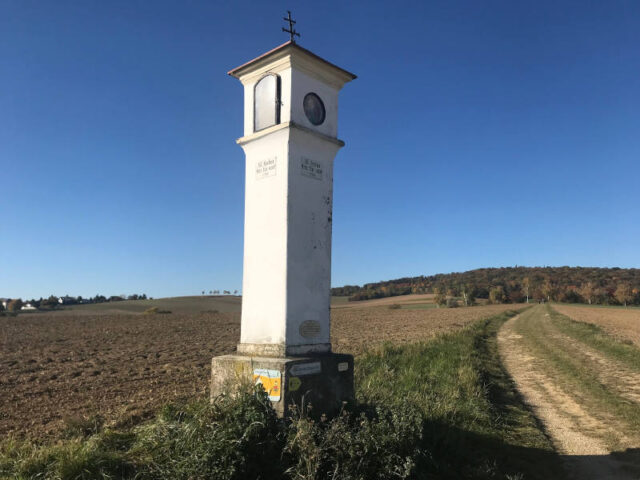 Wir sind mit dem Auto nach Ernstbrunn gefahren und haben dort am Marktplatz geparkt, wo die Rundwanderung beginnt. Zuerst ging es noch durch den Ort, dann führt ein Weg über die Felder, mal hinunter, mal wieder hinauf. Da die Aussichtswarte schon bald von der Ferne winkt, kann man sich gut orientieren, obwohl die Markierung auch ziemlich gut ist. Nur ein kurzes Stück geht es steiler auf den Oberleiserberg und zur Aussichtswarte hinauf. Der Ausblick schon von der Anhöhe oben ist wirklich schön und die Bänke laden zur Rast ein, die sich auch deswegen anbietet, weil hier ungefähr die Mitte der Wanderung ist. Aber selbstverständlich möchte man einen Blick von der Aussichtswarte werfen. Das ist aber gar nicht so einfach, denn einerseits macht die Mittagspause, was uns beim ersten Besuch erst zu spät aufgefallen ist. Andererseits ist der Oberleiserberg zwar mit 475m nicht besonders hoch, trotzdem hat uns ein andermal der Wind den Zutritt verweigert. Wenn euch also der Blick von der Warte wichtig ist, ruft ihr am besten vorher an und erkundigt euch nach den Gegebenheiten.