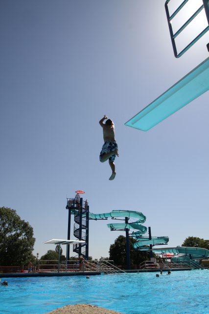 Ich finde ja, dass das Bad sich hervorragend auch für größere Kinder eignet, da einerseits der Sprungturm und die Sprungmöglichkeiten im großen Becken zu waghalsigen Spielen einladen.