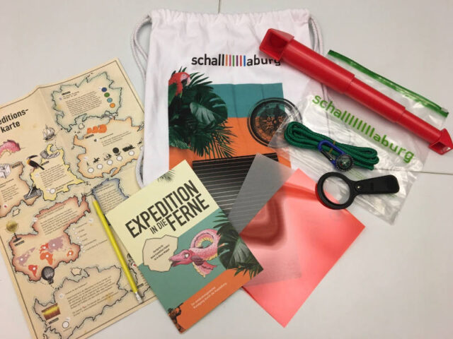 Mit einer Schatzkarte und Werkzeugen ausgerüstet, können die Jungforscher_innen in jedem Raum kleine Entdeckungen machen und den Sachen auf den Grund gehen. Unter anderem gibt es einen Kompass, ein Periskop (Fernrohr mit dem um die Ecke geschaut), Folien, um geheime Botschaften zu entdecken und natürlich auch eine Lupe.