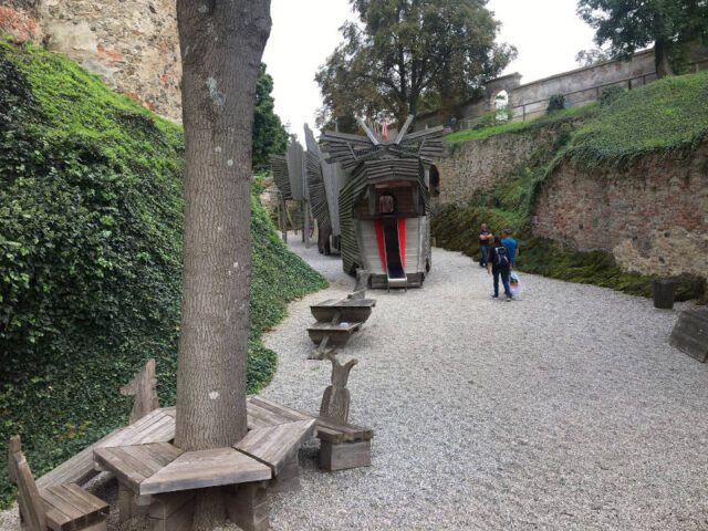 Im Burggarten findet ihr auch einen kleinen, aber feinen Spielplatz, die Hauptattraktion ist dabei ganz eindeutig der große Kletterdrache. Auch Bogenschießen kann man auf dem Gelände, dafür muss man sich allerdings extra anmelden. Am Besten ihr informiert euch bereits vor dem Besuch, ob es gerade möglich ist. Überall im Burggarten sind Sitzmöglichkeiten für eine gemütliche Jause im Freien und ein Restaurant für den kleinen und großen Hunger gibt es natürlich auch.