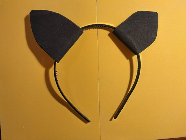 Für das Katzenkostüm habe ich mich für schwarzen Mossgummi entschieden und habe dafür auch noch spitzere Ohren zugeschnitten. Wird es ein schwarzen Kätzchen oder doch eine 3 färbige Glückskatze? Welche Farbe das Katzenkostüm haben soll, könnt ihr von den Kleidungsstücken, die ihr schon im Schrank habt inspirieren lassen.