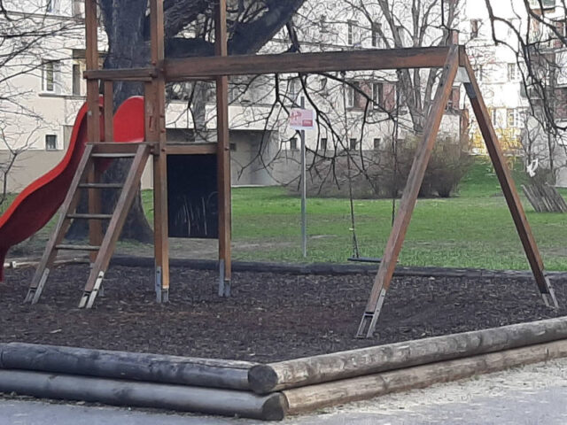 Es ist auch nett, mal andere Stadtteile zu erkunden. Fein ist außerdem, dass bei jeder Schnitzeljagd mind. ein Spielplatz vorkommt. Hier waren die Spielgeräte einfach im Gemeindebau auf der Wiese verstreut. Aber es gibt zwei weitere Spielplätze in der Nähe: der Kontinete-Spielplatz beim Kaiserwasser und der Radmotorik-Park Kaisermühlen an der Neuen Donau.