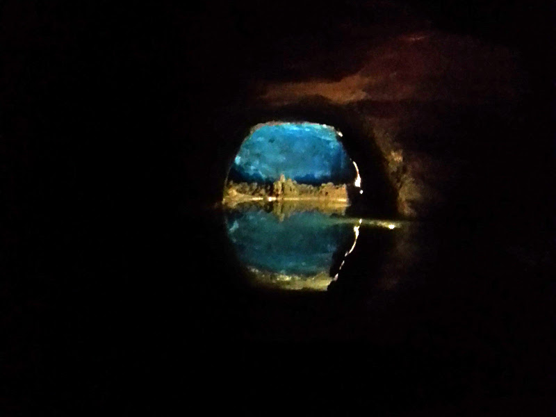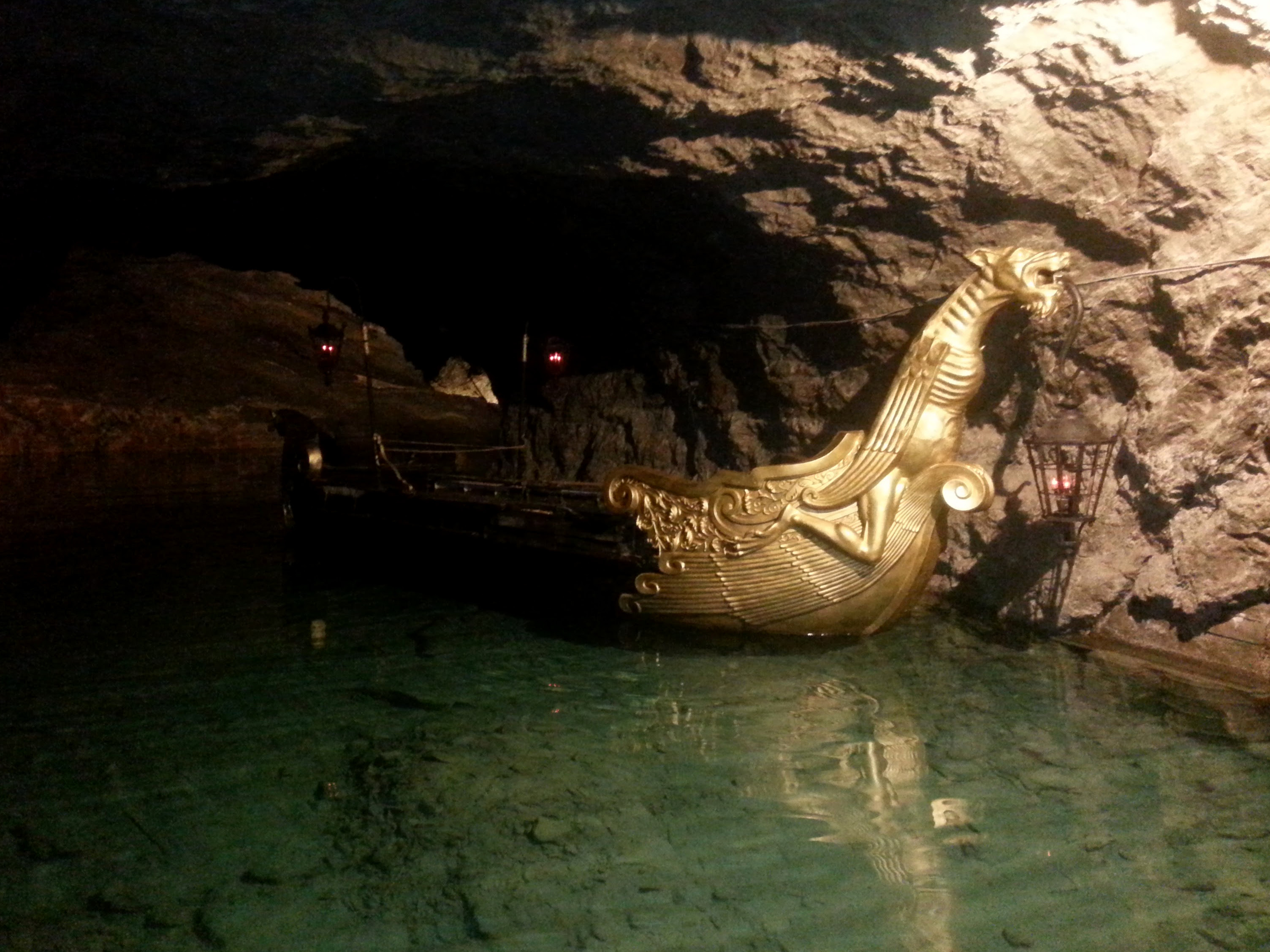 Über 68 Stufen ging es dann hinab zur letzten Ebene, die bei einem Wassereinbruch überflutet wurde. Ca. 25 Personen haben in einem Boot Platz, mit dem man dann eine Rundfahrt über den See macht. Begleitet von mystischer Musik fährt man über glasklares Wasser, in dem kein Leben möglich ist. Vorbei auch an der Filmkulisse zu „Die drei Musketiere“, welcher unter anderem in dieser Grotte gedreht wurde.