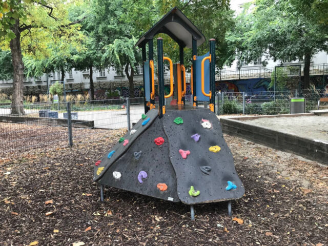 Der Reithofferpark liegt mitten im dicht bebauten 15. Bezirk. Direkt daneben fahren die Straßenbahnlinien 6 und 49, daher kann es auch mal lauter sein. Auch eine Toilettenanlage sowie ein Trinkwasserbrunnen und Sitzgelegenheiten gibt es dort.