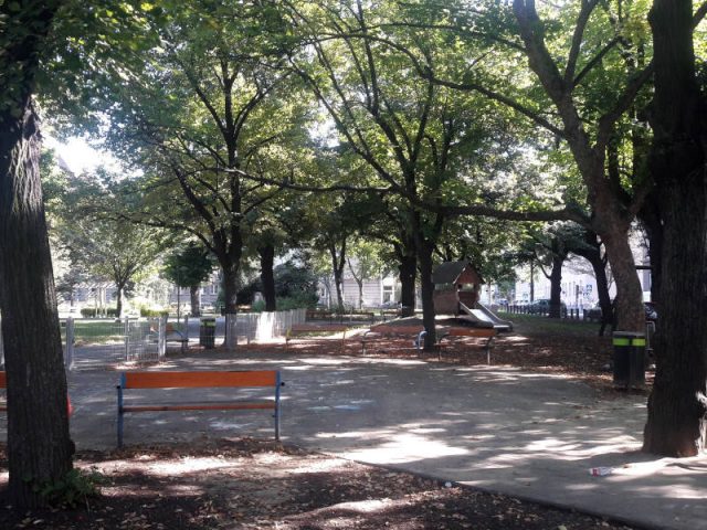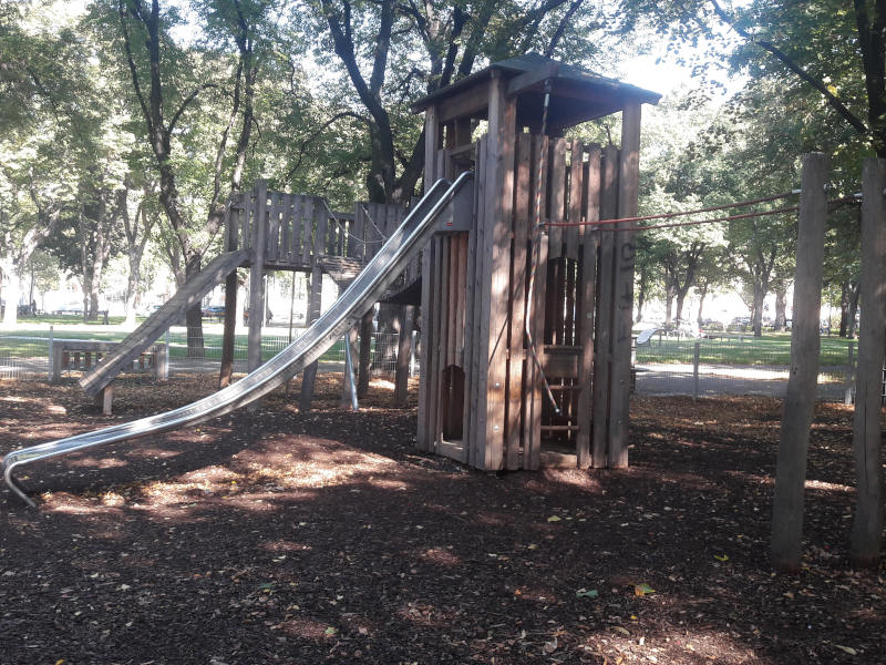 Trotz Gürtelnähe und mehreren Parkeingängen eignet sich der Spielplatz auch sehr gut für jüngere Kinder. Der gesamte Spielplatz ist eingezäunt, so dass es leichter fällt, die Kleinen im Auge zu behalten. Die Bäume bieten angenehmen Schatten bei den meisten Spielgeräten und Sitzgelegenheiten.
