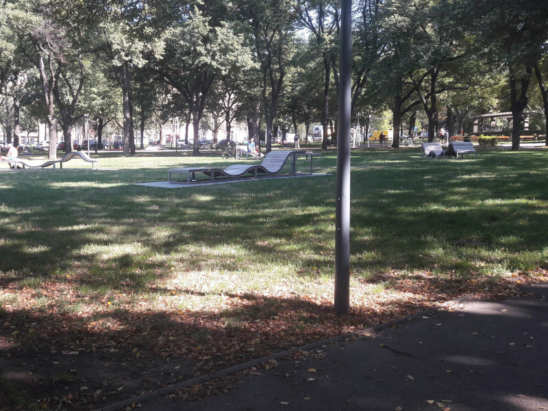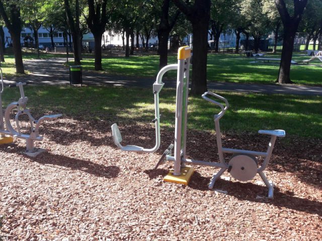 Auch die verschiedenen Fitnessgeräte werden sehr gerne von Teenagern und Erwachsenen genutzt. Wer es weniger sportlich mag und einfach in der Nähe ist und eine kleine Pause braucht, findet fast immer eine freie Bank.