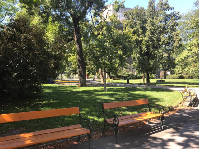 Der Park wirkt groß und einladend, obwohl die zwei Flaktürme das Bild prägen. Direkt neben dem einen Turm liegt der Spielplatz, beim anderen lädt ein Nachbarschaftsgarten zum mitmachen ein. Dort ist auch der Bücherschrank mit Gratis-Büchern der zum Tauschen einlädt. Barrierefreie Toiletten sind vor dem Spielplatz, Trinkwasser ist am eingezäunten Spielplatz vorhanden, wo es aufgrund von großen Bäumen auch Schatten gibt. Zwischen den Türmen breitet sich eine Wiese aus, auf der man picknicken, sich ausrasten oder spielen kann. An der Neulinggasse ist ein kleiner Pavillon aus dem Jahr 1785 erhalten geblieben, der in der warmen Jahreszeit als Schanigarten genutzt wird.