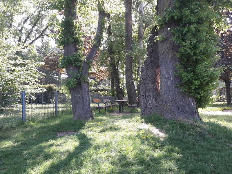 Wiesen zum Picknicken, Tisch-Bank-Kombinationen, Hängeweiden zum darunter Verstecken und viel Platz zum Laufen. Die unterschiedlichen kleinen Holzhüttchen werden von den Kinder sehr gern bespielt. Der Wasser-Sand-Spielbereich im vorderen Teil sorgt für Pritschel-Gatsch-Spaß!