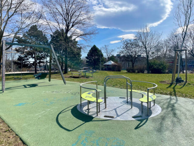 Das war eine gute Idee, denn mir hat der Fridtjof-Nansen-Park mit seinen Föhrenwäldchen, den weitläufigen Wiesen und den vielen Spielmöglichkeiten für unterschiedliche Altersgruppen wirklich gut gefallen. Aber da er nicht sehr groß ist, muss man deswegen vielleicht auch nicht quer durch die Stadt fahren, obwohl er mit seinen inklusiven Spielgeräten schon etwas Besonderes bietet, nah an den Öffis liegt und auch z.B. das Höpferlbad in der Nähe liegt.