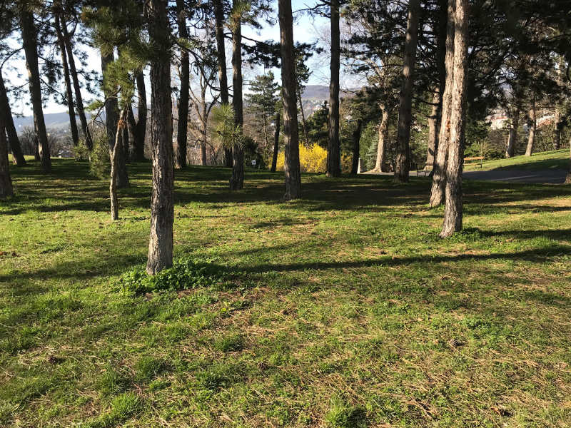 Der Hugo Wolf Park schmiegt sich an einen Hang, wobei sich sowohl unten in der Nähe der Krottenbachstraße (35 A Station Rodlergasse) als auch oben bei der Hartäckerstraße (40 A Station Hugo Wolf Park) ein Spielplatz befindet. Die Spielplätze sind klein, aber ich finde die Gegend recht nett und er ist auch nur einen Steinwurf vom Türkenschanzpark entfernt. Im Hugo Wolf Park selbst gibt es herrliche Bäume, viel Schatten, aber auch ein Familienfreibad und Bienenstöcke. Am oberen Ende hat man einen schönen Ausblick auf das Krottenbachtal, die Kasgrabenkirche, den Leoboldsberg, Weinberge und den Wienerwald. Außerdem gibt es dort ein entzückendes kleines Lokal, das Salettl Pavillon (Hartäckerstraße 80), dessen Architekt ein Schüler Otto Wagners war, das allerdings – außer dem Ausblick und der Parknähe – für Kinder nichts Besonderes anbietet.