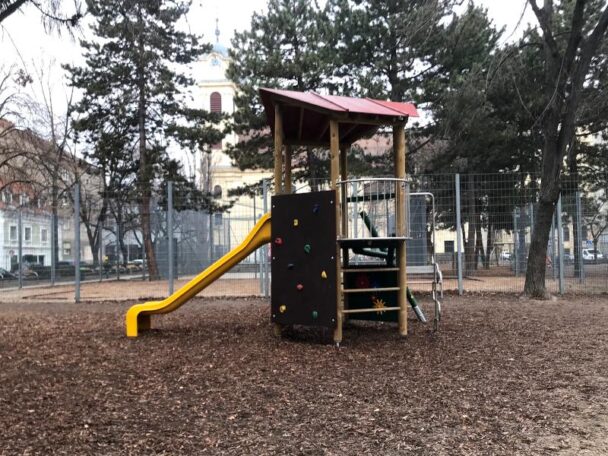 Klar, jetzt in der kalten Jahreszeit sind die meisten Spielplätze nicht so einladend. Aber manche bewahren sich auch da ihren Charme. Einer davon ist der Spielplatz im Lichtentalerpark. Der liegt mitten im dicht bebauten 9. Bezirk und hat für alle Altersgruppen etwas zu bieten. Die Föhren spenden im Sommer Schatten und im Winter geben sie einem das Gefühl, als wäre man im Wald und würde über Waldboden laufen. Da ganz in der Nähe eine Schule ist, kann ich mir vorstellen, dass der Park gut frequentiert ist. Toiletten hab ich aber keine gesehen, Trinkbrunnen gibt es dafür zwei und Sitzgelegenheiten sind auch eine Menge vorhanden.