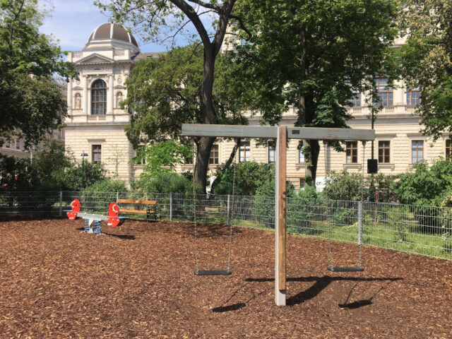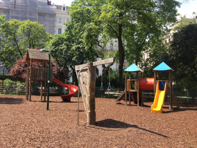 Als ich eine Zeit lang als Kindermädchen gearbeitet habe war der Spielplatz im Rathauspark Teil meiner täglichen Routine. Er ist schön übersichtlich, hat aber trotzdem viel zu bieten. Am Rathausplatz finden auch regelmäßig Veranstaltungen und Märkte statt, einen Besuch dort kann man daher auch gut mit einem Spielplatzbesuch verbinden.
