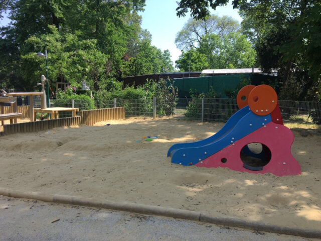 Kleine Rutsche im Sandspielbereich