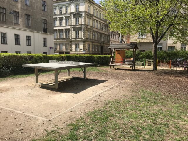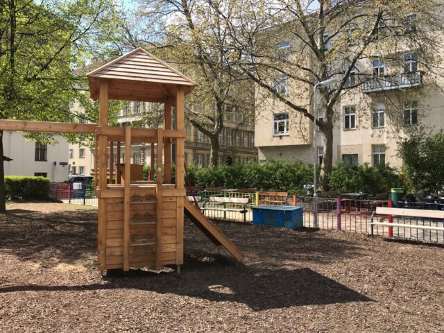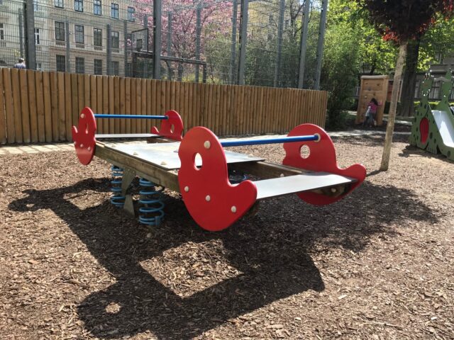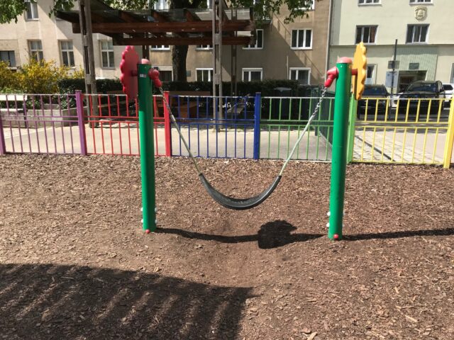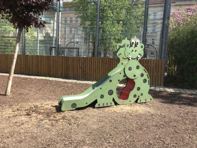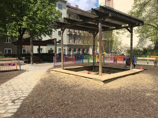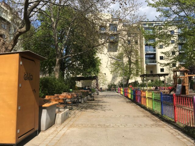 Der Rubenspark liegt mitten im dichtbebauten 5. Bezirk, ist nicht besonders groß und gut genutzt. Eigentlich besteht er aus dem Spielplatz, dem Ballspielkäfig und einer daran angrenzenden Hundezone. Der Spielplatz ist klein aber fein und ein Tipp für Zwischendurch. An zwei Außenkanten des Spielplatzes sind asphaltierte Wege, die mit Bänken gesäumt sind und zu ersten Roller-, Rad- oder Skateversuchen einladen. Straßenkreidemalereien oder Spiele wie Tempelhüpfen oder Seilspringen finden ebenso hier statt. Ein Trinkbrunnen versorgt alle mit frischem Wasser und ein Öklo ist eine wirklich tolle Alternative zu Mobilklos, da es auch im Sommer noch nach Sägespänen riecht. Da ich immer wieder danach gefragt worden bin, wie das denn aussieht hab ich euch hier ein paar Fotos gemacht.