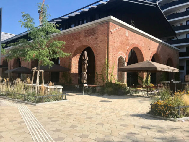 Der Walter-Kuhn-Park liegt inmitten des Stadtentwicklungsgebietes „Neues Landgut“. Ich fahre dort oft vorbei und habe die Entstehung mitverfolgt, doch im Park selber war ich jetzt das erste Mal. Ich finde er hat eine ganz eigene Atmosphäre, weil die Backsteingemäuer der ehemaligen Gösserhalle sowie der dazugehörenden Inventarhalle erhalten geblieben sind. Wir hatten eine Feier in der Nähe und sind nachher noch mit den Kindern dort am Spielplatz gewesen.