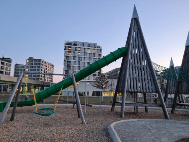 Habt ihr Lust auf einen Ausflug in die Seestadt? Abgesehen vom See gibt es dort einiges zu tun. Ich war mit meinem Sohn unterwegs und wir haben zufällig einen kleinen, aber feinen Spielplatz in der Seestadt entdeckt, der uns gut gefallen hat. Er liegt direkt an der Endstation der U2 Seestadt, gleich neben dem Radspielplatz unter der U-Bahn. Ich finde, der Spielplatz liegt sehr schön, da er von brachliegenden Felder umgeben ist. Es ist also sehr ruhig.