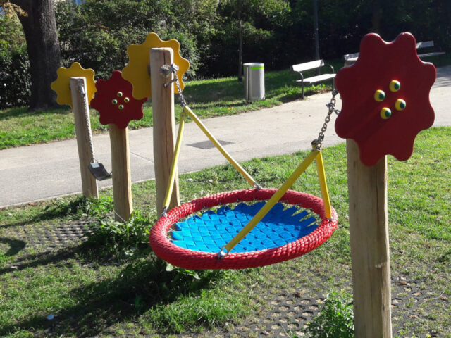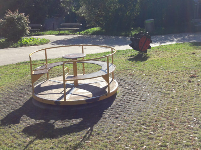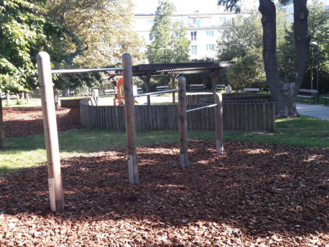 Außerdem gibt es noch Reckstangen, ein Karussell und vor allem Platz zum Herumlaufen. Die viele Sitzmöglichkeiten sind ideal für Begleitpersonen, die rasten oder sitzend zuschauen wollen.