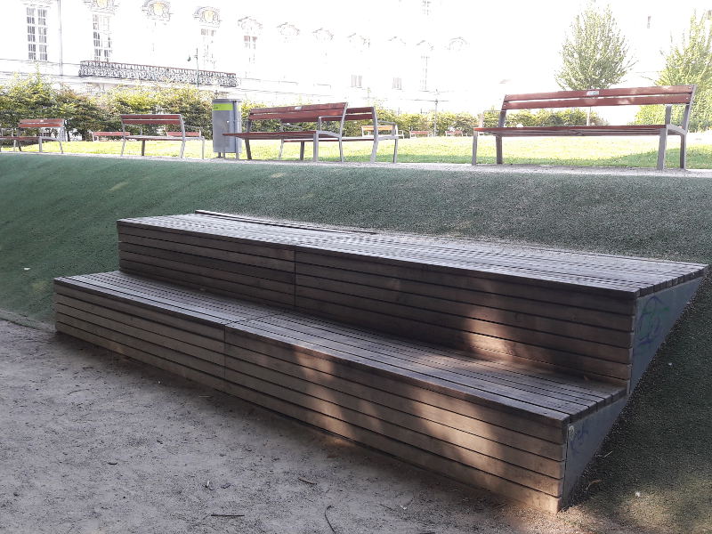 In Richtung 2er Linie ist der Spielplatz Webhuberpark eingezäunt. Hinter dem Spielplatz, etwas erhöht befindet sich der Weghuberpark. Der Park und der Spielplatz sind durch Treppen getrennt, aber es gibt keinen Zaun. Diese Info ist für Eltern mit sehr explorativem Nachwuchs wahrscheinlich wichtig 😉