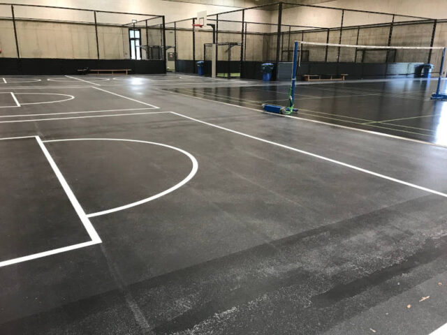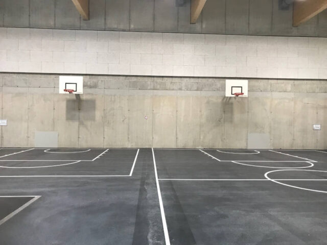 Über eine Stiege geht es hinauf zu der großen Halle, die mehrere unterschiedliche Spielplätze für verschiedene Sportarten bereitstellt. Die dafür benötigten Sportgeräte könnt ihr euch übrigens kostenlos dort ausborgen. Ihr braucht dafür nur einen Ausweis.