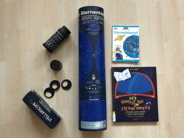 Nicht jeder bekam von seinen Eltern den Sternenhimmel erklärt, daher sind Hilfsmittel gefragt. Es gibt viele wirklich nette und sachkundige Kinderbücher zum Thema, oder Sternkarten. Hier findet ihr eine Anleitung, wie ihr euch eine Sternenkarte selber basteln könnt. Natürlich ist auch ein Stellarscope oder ein App hilfreich. Apps sind besonders für unterwegs fein, um euch die Suche von Sternenbildern zu erleichtern. Mehr dazu findet ihr hier.