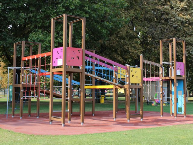 Vor, zwischen und nach dem Sprung ins Nass lädt ein Spielplatz zum Spielen ein: