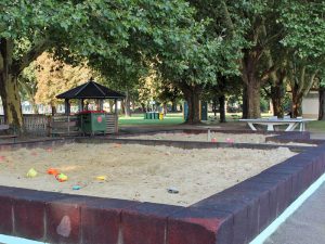 Wir haben eigentlich immer das gerade von meiner Tochter favorisierte Sandspielzeug mit, welches wir auch als Wasserspielzeug nutzen. Haben wir das Spielzeug in der Eile doch einmal vergessen haben, ist es kein Drama, denn in der großen Sandkiste findet sich meistens ein liegen gelassenes Sandspielzeug.