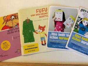 Kinderbücher auch für jüngere Kinder und Informations-Material zum Thema Seelische Gesundheit haben wir in der kinderinfo für euch vorereitet. Kommt vorbei und schaut euch um.