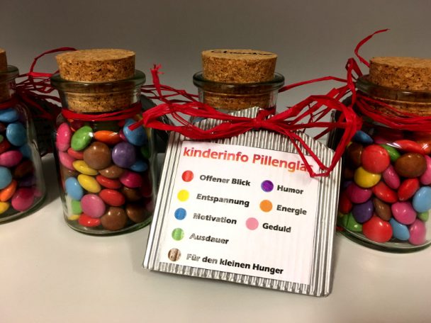 Meinen kinderinfo-Kolleginnen wollte ich zum Abschied etwas Besonderes schenken. Nach einiger Suche in diversen Internet-Foren, unter anderem in pinterest, habe ich diese Smarties-Gläschen entdeckt – ein nettes, persönliches Geschenk zum Abschied für KinderpädagogInnen, LehrerInnen und auch KollegInnen. Ihr braucht: schöne Gläser mit Deckel jede Menge Smarties (da passen wirklich mehr rein, als ich zu Anfang […]
