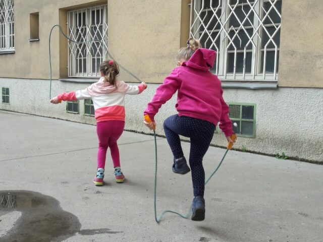 Jetzt, wo Fernunterricht für uns wieder am Programm steht, brauchen meine Kinder und ich auch wieder regelmäßiges Bewegungsprogramm, damit wir unsere Energien loswerden. Mit Homeoffice, Homeschooling und Home-Kindergarden ist nicht immer alles eitel Wonne, Sonnenschein und diese überschüssigen Energien müssen raus! Bei der folgenden Ideensammlung war mir wichtig, dass wir Bewegungsmöglichkeiten fürs schnelle Auspowern im Innenhof, Turnspiele für den Beserlpark ums Eck und einen Pool an Bewegungs- und Turnideen für den Spielplatzbesuch haben. Weil manchmal muss es schnell gehen, meine Kreativität auch nicht immer auf Knopfdruck frei sprudelt und es trotzdem Spaß machen und gleichzeitig genügend Auspowermöglichkeit bieten soll.