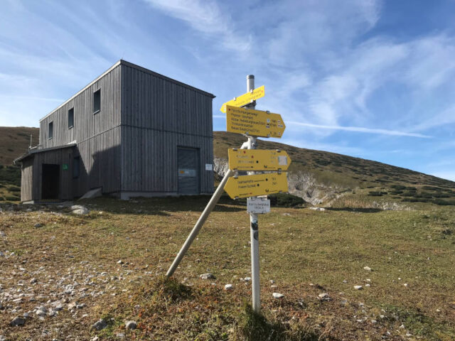 Startpunkt ist das Preiner Gscheid, ein kleiner Pass, gute 100km von Wien entfernt. Das Preiner Gscheid ist sowohl mit öffentlichen Verkehrsmitteln als auch mit dem Auto zu erreichen, die Parkplätze bei der Edelweiß Hütte (1070 m Seehöhe) sind teils kostenpflichtig, teils kostenlos. Von dort startet ihr entweder einen Forstweg entlang oder ihr nutzt die gut sichtbaren Abkürzungen nach oben. Die erste Etappe führt zum Waxriegelhaus auf 1361 m Seehöhe, das mit einer Stunde Wegzeit angegeben ist. Der Weg dorthin ist ein kleiner Umweg, wenn ihr also noch keine Pause machen wollt oder eigene Jause mitgenommen habt, dann findet ihr hier auch auf den Wiesen gute Rastplätze. Bänke sind allerdings rar.