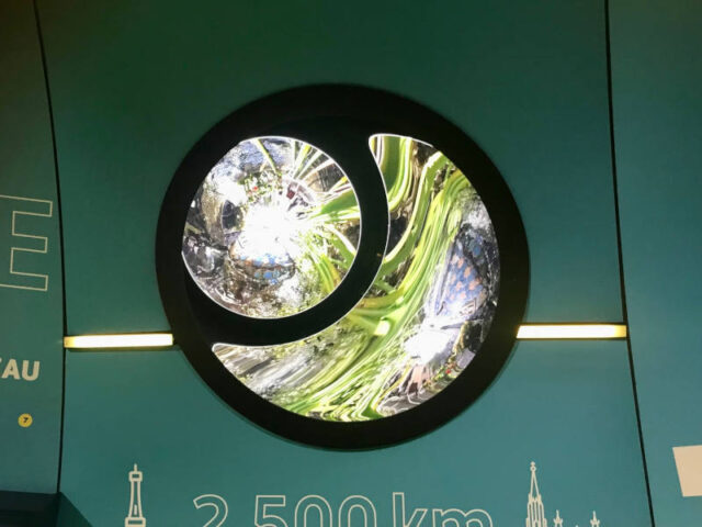 Ich muss ehrlich sagen, dass das Licht, dass mich weiterleiten hätte sollen, mir nicht immer klar gemacht hat, wo genau die Stimme mich jetzt haben möchte. Dafür waren es vermutlich zu viele Reize für mich: Die Stimme, die teilweise (oder eh immer?) den Text vorgelesen hat, der sich auf den Wänden rechts und links befand, Bilder und Videos, die zusätzliche Inhalte veranschaulichten, Lichtbalken, welche eigentlich hätten anzeigen sollen, bei welcher Station wir gerade sind, und zusätzlich noch wunderschöne bewegte Bildinstallationen: Anscheinend bin ich daher auch nicht die Einzige, die da ein bisschen Unterstützung brauchte.