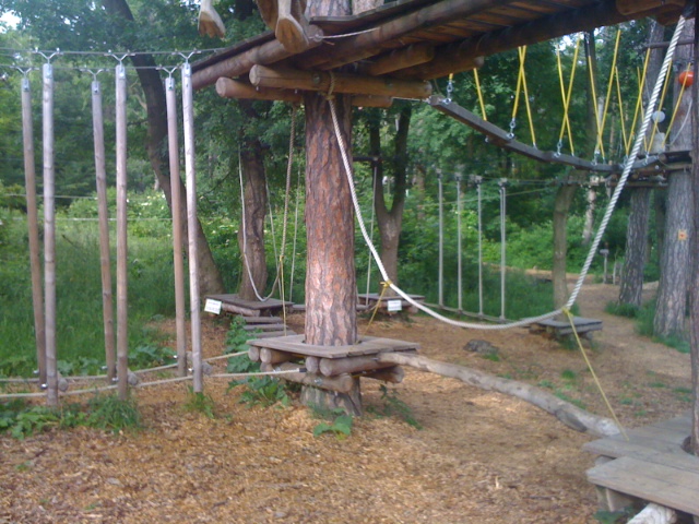 - Der Hochseilklettergarten beinnt ab einer Körpergröße von 10 cm, da gibt es 5 einfache (blaue) Parcours bis zu 7 Meter Höhe